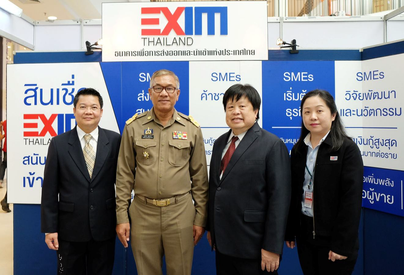 นายวิทวัส ปัญญาแหลม (ซ้ายสุด) ผู้อำนวยการฝ่ายกิจการสาขา ธนาคารเพื่อการส่งออกและนำเข้าแห่งประเทศไทย (EXIM BANK) ต้อนรับนายสุรพันธ์ ดิสสะมาน (ที่ 2 จากซ้าย) รองผู้ว่าราชการจังหวัดอุบลราชธานี ประธานในพิธีเปิดงานไทยแลนด์ สมาร์ทมันนี่ สัญจรอุบลราชธานี ครั้งที่ 3 และนายรัฐกร อัสดรธีรยุทธ์ (ที่ 2 จากขวา) ประธานเครือหนังสือพิมพ์ดอกเบี้ยธุรกิจและประธานจัดงาน ณ บูท EXIM BANK ที่ศูนย์การค้าเซ็นทรัลพลาซา อุบลราชธานี เมื่อเร็วๆ นี้ ในโอกาสที่ EXIM BANK เข้าร่วมออกบูทเพื่อให้คำปรึกษาแนะนำและบริการทางการเงินแก่ผู้ประกอบการ SMEs ที่สนใจจะเริ่มต้นหรือขยายธุรกิจส่งออกและลงทุน