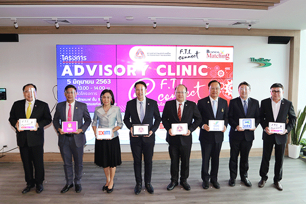 นายสุพันธุ์ มงคลสุธี ประธานสภาอุตสาหกรรมแห่งประเทศไทย (ส.อ.ท.) และประธานกรรมการ EXIM BANK นางวรรธนา มงคลศรี รองกรรมการผู้จัดการ EXIM BANK และผู้บริหารสถาบันการเงิน เปิดตัวโครงการ “Advisory Clinic @ F.T.I. Connect” โดยความร่วมมือระหว่าง ส.อ.ท. กับสถาบันการเงินพันธมิตร รวมถึง EXIM BANK เพื่อให้คำปรึกษาและบริการทางการเงิน รวมถึงสินเชื่ออัตราดอกเบี้ยพิเศษและเงื่อนไขผ่อนปรน ที่จะช่วยให้ผู้ประกอบการไทยที่เป็นสมาชิก ส.อ.ท. มีสภาพคล่องในการดำเนินธุรกิจและรักษาการจ้างงานแม้ในภาวะวิกฤตจากผลกระทบของ COVID-19 ณ ส.อ.ท. เมื่อเร็ว ๆ นี้ |