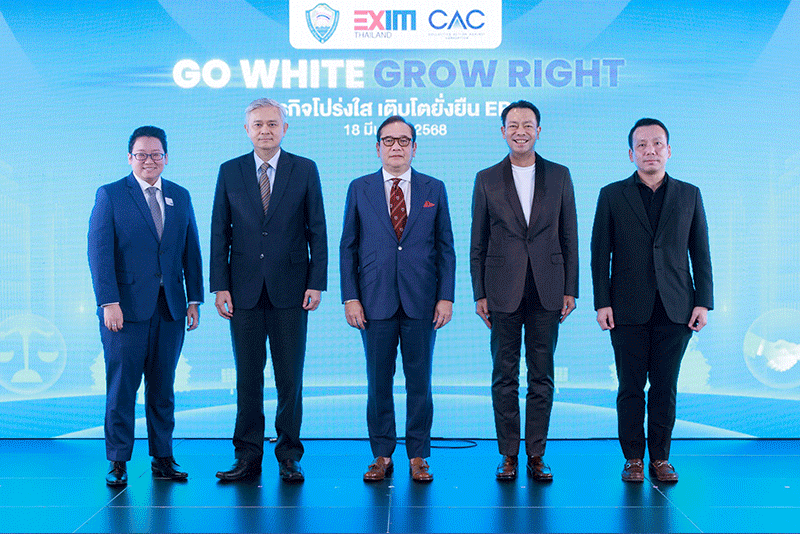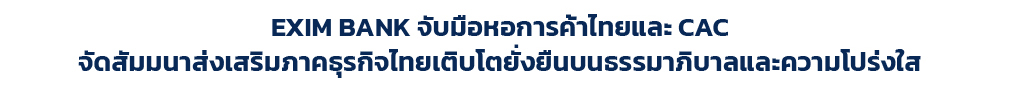 นายบัณฑิต สะเพียรชัย ประธานกรรมการบริหาร EXIM BANK กล่าวเปิดงานสัมมนา “GO WHITE GROW RIGHT ธุรกิจโปร่งใส เติบโตยั่งยืน EP.1” จัดโดย EXIM BANK ร่วมกับหอการค้าไทย และแนวร่วมต่อต้านคอร์รัปชันของภาคเอกชนไทย (CAC) เพื่อส่งเสริมให้ภาคธุรกิจไทยมีธรรมาภิบาลและความโปร่งใสในการดำเนินงานขับเคลื่อนการเติบโตทางเศรษฐกิจ สังคม และสิ่งแวดล้อมของโลกอย่างยั่งยืน พร้อมด้วย ดร.มานะ นิมิตรมงคล ประธานองค์กรต่อต้านคอร์รัปชัน (ประเทศไทย) และกรรมการ คณะกรรมการต่อต้านคอร์รัปชันและส่งเสริมจรรยาบรรณ หอการค้าไทย ร่วมนำเสนอแนวทางยกระดับผู้ประกอบการ SMEs ไทยให้มีธรรมาภิบาล ดร.รักษ์ วรกิจโภคาทร กรรมการผู้จัดการ EXIM BANK บรรยายเกี่ยวกับบทบาทของ EXIM BANK ในการสนับสนุนความโปร่งใสเพื่อขับเคลื่อนภาคธุรกิจไทยสู่ความยั่งยืน นายพรหเมศร์ เบ็ญจรงค์กิจ ผู้อำนวยการ CAC เสนอแนวทางการดำเนินธุรกิจอย่างโปร่งใส และ ภญ.วันทณีย์ เสนาคุณ ประธานเจ้าหน้าที่บริหาร บริษัท วันเวนเชอร์ จำกัด แบ่งปันประสบการณ์ในการนำหลักธรรมาภิบาลไปใช้ในการดำเนินธุรกิจ ภายในงาน ผู้ประกอบการสามารถขอรับคำปรึกษาและตรารับรองสมาชิก CAC เพื่อเข้าถึงสินเชื่อในอัตราดอกเบี้ยต่ำสุด 3.75% ต่อปี ระยะเวลาผ่อนชำระสูงสุด 7 ปีสำหรับธุรกิจที่ได้รับการรับรองมาตรฐาน CAC หรือ ISO ขั้นสูง ณ EXIM BANK สำนักงานใหญ่ เมื่อเร็ว ๆ นี้ |