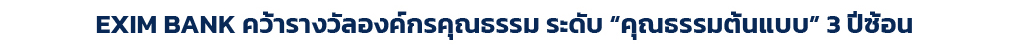 EXIM BANK ได้รับผลการประเมินและการประกาศยกย่ององค์กรคุณธรรมประจำปีงบประมาณ พ.ศ. 2567 ระดับ “คุณธรรมต้นแบบ” ในระดับกรมเป็นปีที่ 3 ติดต่อกัน และได้รับรางวัล “ระดับคุณธรรมต้นแบบ” ในระดับสำนัก/กอง อีก 27 หน่วยงาน ซึ่งเป็นระดับสูงสุดของการประเมินชุมชน องค์กร อำเภอ และจังหวัดคุณธรรม จากคณะกรรมการส่งเสริมคุณธรรมแห่งชาติ กรมการศาสนา เป็นผลลัพธ์จากการขับเคลื่อนองค์กรด้วยคุณธรรม 5 ประการ “พอเพียง วินัย สุจริต จิตอาสา และกตัญญู” ภายใต้หลัก 3 มิติ ได้แก่ หลักธรรมทางศาสนา หลักปรัชญาของเศรษฐกิจพอเพียง และวิถีวัฒนธรรมไทยที่ดีงามตามแผนปฏิบัติการด้านการส่งเสริมคุณธรรมแห่งชาติ ระยะที่ 2 (พ.ศ. 2566-2570) โดยผู้บริหารและบุคลากรทุกระดับของ EXIM BANK มุ่งมั่นปฏิบัติงานด้วยจิตสำนึกที่ดีด้านคุณธรรมและจริยธรรม ซึ่งเป็นคุณค่าพื้นฐานและปัจจัยสำคัญในการพัฒนาทรัพยากรมนุษย์ให้มีความสมบูรณ์ในทุกมิติ เป็นคนดี คนเก่ง และคนมีคุณภาพพร้อมเป็นพลังขับเคลื่อนให้องค์กรและประเทศชาติเป็นสังคมที่ปลอดการทุจริตและประพฤติมิชอบ เป็นองค์กรแห่งคุณธรรมที่ยั่งยืนสืบไป |