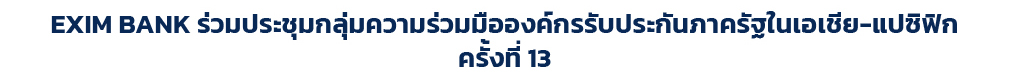 นางวรางคณา วงศ์ข้าหลวง รองกรรมการผู้จัดการ EXIM BANK และผู้บริหารจากองค์กรรับประกันภาครัฐในเอเชีย-แปซิฟิก เข้าร่วมประชุมผู้บริหารสูงสุดกลุ่มความร่วมมือองค์กรรับประกันภาครัฐในเอเชีย-แปซิฟิก ครั้งที่ 13 (The 13th Regional Cooperation Group CEO Meeting) เพื่อแลกเปลี่ยนวิสัยทัศน์และแนวคิดเชิงนโยบายในการพัฒนาบริการประกันการส่งออกและการลงทุน ขยายความร่วมมือระหว่างองค์กรสมาชิก รองรับการขยายตัวทางเศรษฐกิจในภูมิภาคเอเชียในอนาคตอย่างยั่งยืน ณ นครซิดนีย์ ประเทศออสเตรเลีย เมื่อเร็ว ๆ นี้ |