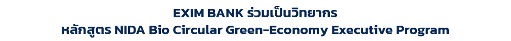 ดร.เบญจรงค์ สุวรรณคีรี รองกรรมการผู้จัดการ EXIM BANK ร่วมบรรยายหัวข้อ “Green Finance ภาครัฐ” ในหลักสูตร NIDA Bio Circular Green-Economy Executive Program (NIDA BCG) จัดโดยคณะรัฐประศาสนศาสตร์ สถาบันบัณฑิตพัฒนบริหารศาสตร์ โดยบรรยายในประเด็นเกี่ยวกับภูมิทัศน์ของการเงินสีเขียวโลก ทั้งทิศทางการเติบโต ที่มาของแหล่งเงินทุน และความต้องการใช้เม็ดเงินสีเขียว รวมถึงในมิติของประเทศไทย โดยประมาณการช่องว่างของเม็ดเงินสีเขียวที่ประเทศไทยต้องเติมเต็มเพื่อบรรลุเป้าหมายการลดก๊าซเรือนกระจกของประเทศ (Nationally Determined Contributions) ตลอดจนนำเสนอบทบาทของ EXIM BANK ในการสนับสนุนการเงินสีเขียวพร้อมกับให้คำแนะนำถึงแนวทางการปรับตัวสู่เศรษฐกิจสีเขียวของผู้ประกอบการไทย ณ โรงแรมอีสติน แกรนด์ พญาไท กรุงเทพฯ เมื่อเร็ว ๆ นี้ |
