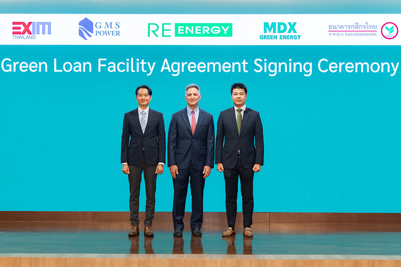 นายอิทธิพล เลิศศักดิ์ธนกุล รองกรรมการผู้จัดการ EXIM BANK นายจักรพงศ์ โอแสงธรรมนนท์ ผู้ช่วยผู้จัดการใหญ่ ธนาคารกสิกรไทย จำกัด (มหาชน) (KBank) ร่วมลงนามกับนายเดวิด ลอร์เร้นซ์ ไม้ค์เคิลส์ ประธานคณะกรรมการ และกรรมการผู้อำนวยการ บริษัท จี เอ็ม เอส เพาเวอร์ จำกัด (มหาชน) และบริษัท รี เอ็นเนอร์ยี จำกัด ในสัญญาสนับสนุนทางการเงินของ EXIM BANK และ KBank จำนวน 410 ล้านบาท แก่โครงการก่อสร้างโรงไฟฟ้าพลังงานแสงอาทิตย์แบบทุ่นลอยน้ำในนิคมอุตสาหกรรมเกตเวย์ซิตี้ จังหวัดฉะเชิงเทรา กำลังการผลิต 21.49 เมกะวัตต์ เพื่อจำหน่ายไฟฟ้าพลังงานสะอาดในรูปแบบข้อตกลงการซื้อขายพลังงานในระยะยาว (Private Power Purchase Agreement: Private PPA) และเดินหน้าสู่เป้าหมายการลดการปล่อยก๊าซเรือนกระจกสุทธิเป็นศูนย์ ณ KBank สำนักงานใหญ่ เมื่อเร็ว ๆ นี้ |