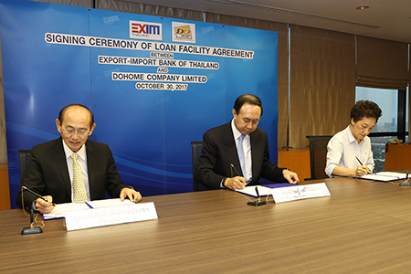 นายพิศิษฐ์ เสรีวิวัฒนา กรรมการผู้จัดการ EXIM BANK ร่วมลงนามกับนายอดิศักดิ์ ตั้งมิตรประชา ประธานกรรมการ บริษัท ดูโฮม