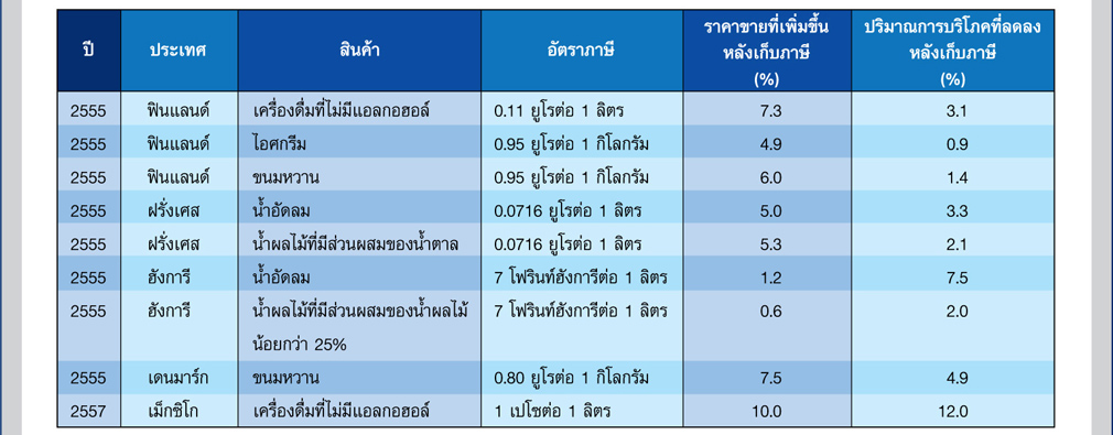 จะเห็นได้ว่าการจัดเก็บภาษีสุขภาพอาจเป็นหนึ่งในเครื่องมือสำคัญของภาครัฐในการช่วยแก้ปัญหาโรคอ้วนและโรคที่เกี่ยวข้องอื่นๆ