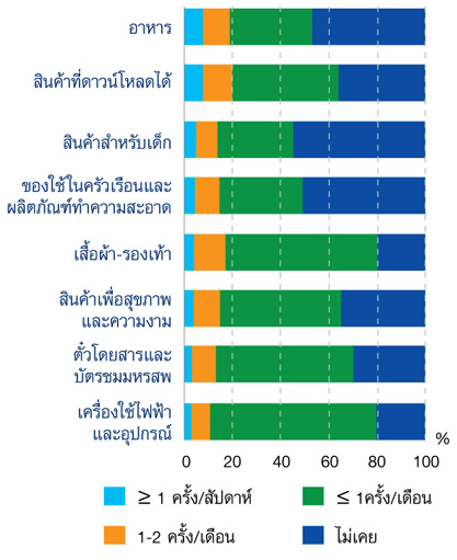 ความถี่ในการซื้อสินค้าออนไลน์ของผู้บริโภคทั่วโลกในปี 2558 |